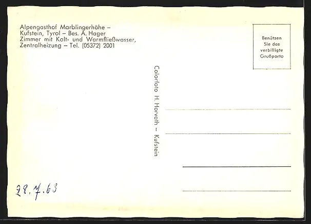 AK Kufstein /Tyrol, Alpengasthof Marblingerhöhe A. Hager