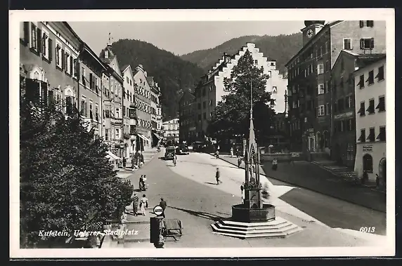 AK Kufstein, Unterer Stadtplatz mit Geschäften