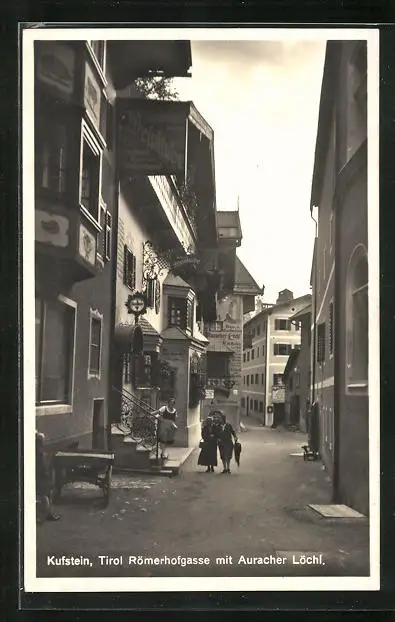 AK Kufstein in Tirol, Römerhofgasse mit Gasthaus Auracher Löchl