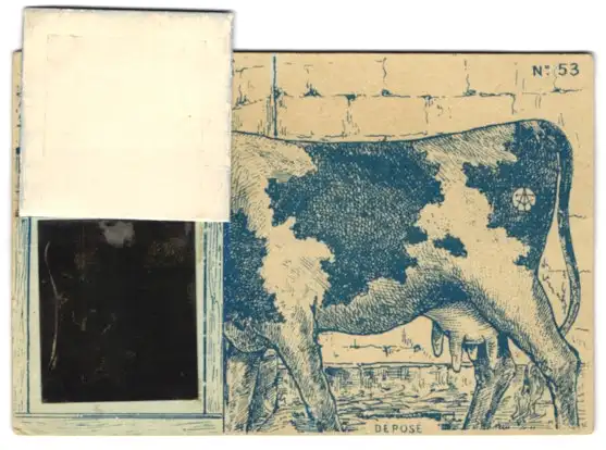 AK Kuhkörper mit Klappe vorm Kopf, dahinter ein Spiegel