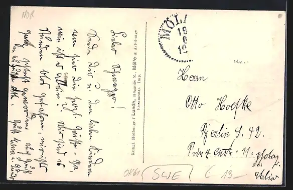 alte Ansichtskarte, gelaufen, Briefmarke entfernt, rückseitig Oberflächenschaden, guter Zustand