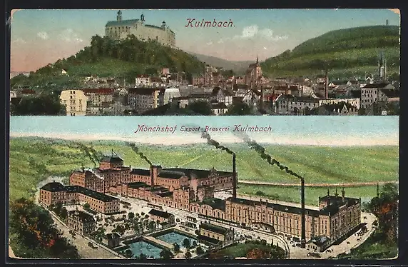 AK Kulmbach, Mönchshof Export-Brauerei Kulmbach, Teilansicht mit Schloss