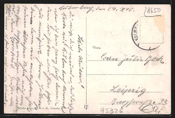 alte Ansichtskarte, gelaufen, Briefmarke entfernt, rückseitig Oberflächenschaden, Eckknick li. oben, guter Zustand