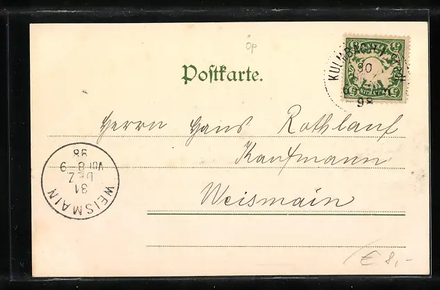 alte Ansichtskarte, gelaufen 1898, guter Zustand