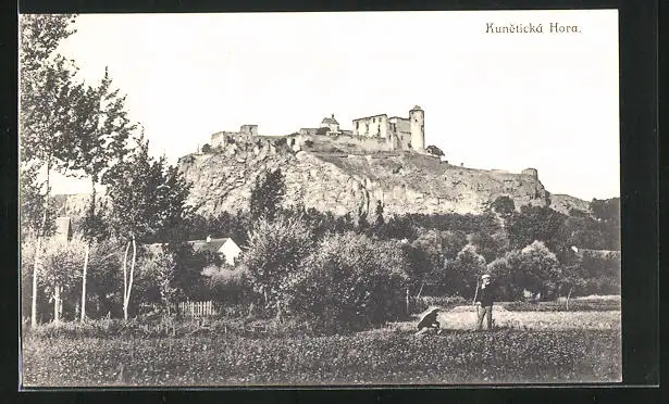 AK Kunetice, Burg auf Felsen