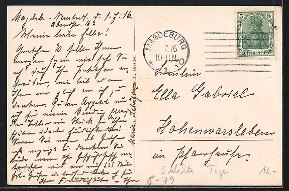 alte Ansichtskarte, gelaufen 1916, Eckknick unten li., Oberflächenschaden, guter Zustand