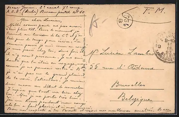 Personenbezogene Daten auf der Rückseite der Karte wurden durch blauen Textmarker unkenntlich gemacht. Die blauen Stellen sind auf die Vorderseite durchgeweicht und wirken sich negativ auf das Postkartenfoto aus