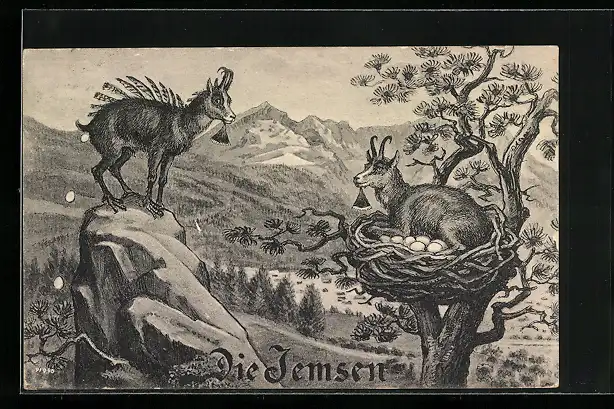 AK Kuriosa, Die Jemsen, Gämse in ihrem Nest brütend