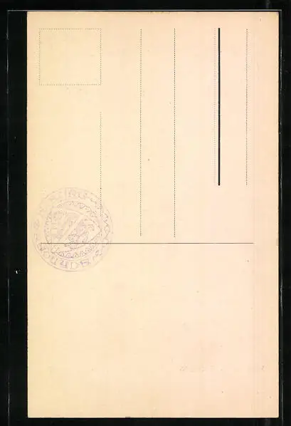 Personenbezogene Daten auf der Rückseite der Karte wurden durch blauen Textmarker unkenntlich gemacht. Die blauen Stellen sind auf die Vorderseite durchgeweicht und wirken sich negativ auf das Postkartenfoto aus