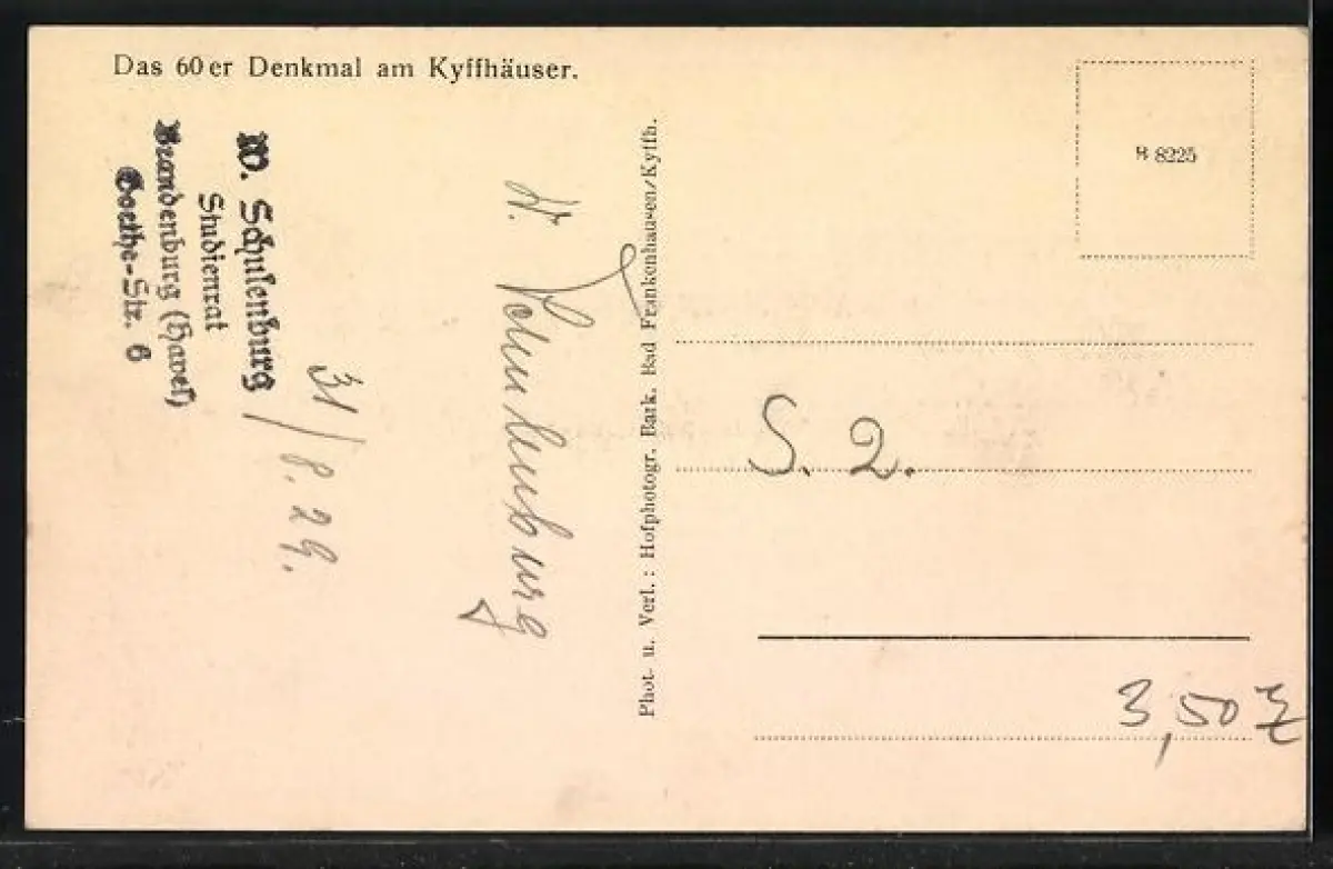 AK Kyffhäuser, Das 60er Denkmal, Weissenburg