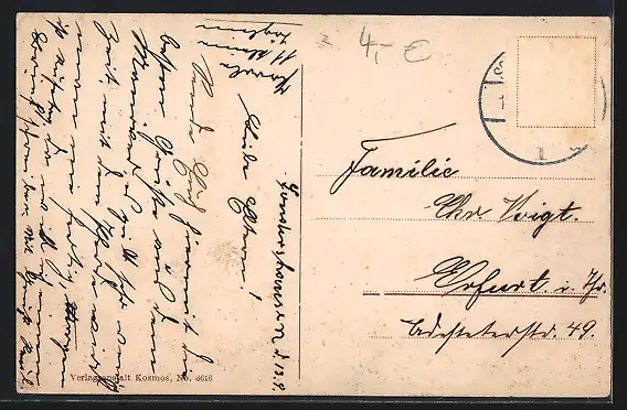 alte Ansichtskarte, gelaufen, Briefmarke entfernt, Stempelspur, guter Zustand