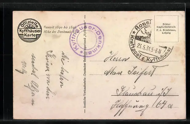 gelaufen 1931, Briefmarke entfernt, sonst guter Zustand