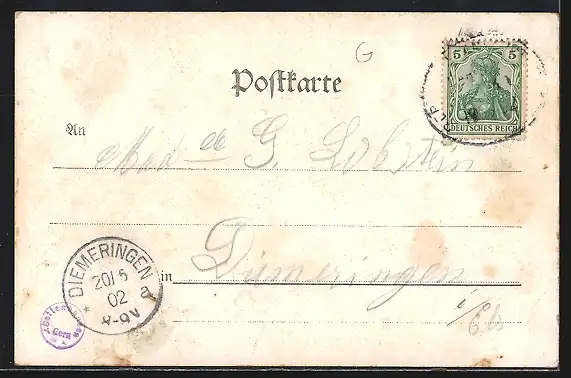 alte Ansichtskarte, gelaufen 1902, Bugspur re., guter Zustand