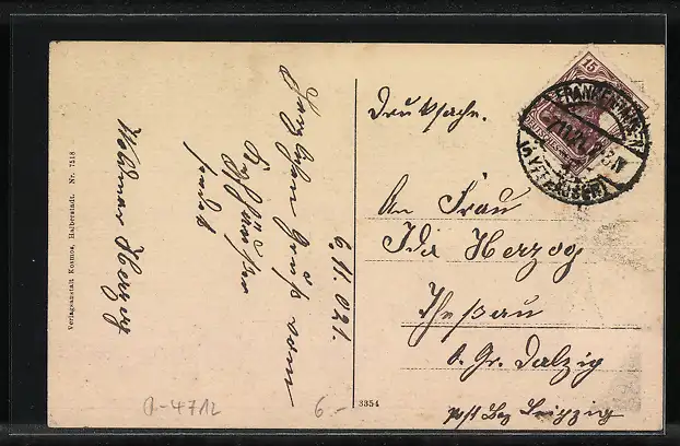 alte Ansichtskarte, gelaufen 1921, Stempelspur, guter Zustand