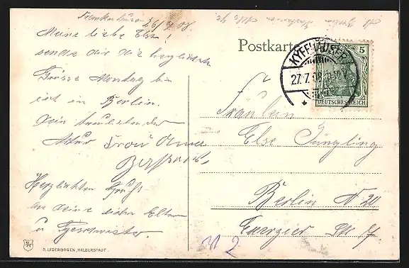 alte Ansichtskarte, gelaufen 1908, guter Zustand