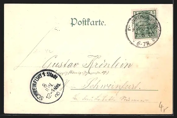 alte Ansichtskarte, gelaufen 1900, guter Zustand