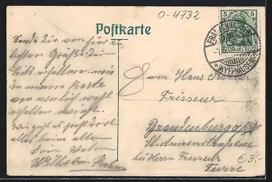 alte Ansichtskarte, gelaufen 1908, guter Zustand