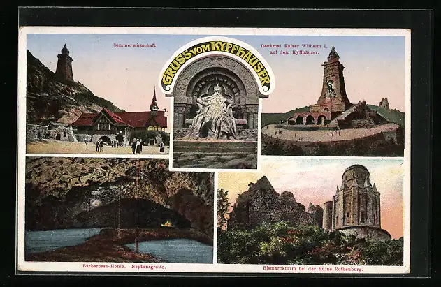 AK Kyffhäuser, Sommerwirtschaft, Denkmal Kaiser Wilhelm I., Bismarckturm, Neptunsgrotte