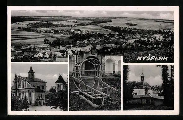 AK Kysperk, Gesamtansicht aus der Vogelschau, Schlitten, Ortspartie