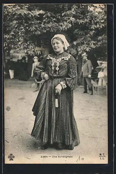 AK L`Auvergne, Une Auvergnate mit Fächer