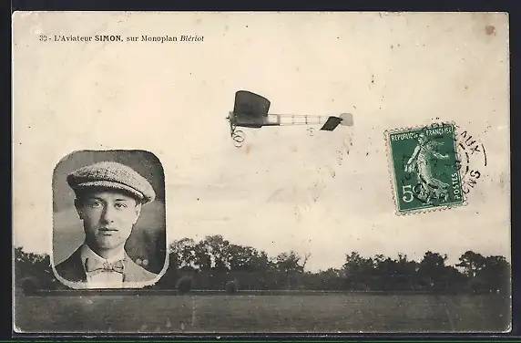 AK L`Aviateur Simon sur monoplan Blériot, Flugzeug