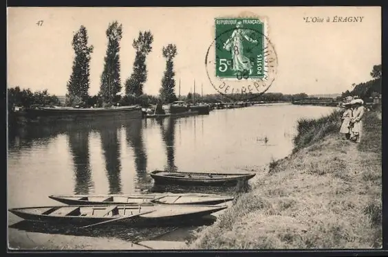 AK L`Oise a Eragny, kleine Boote am Flussufer