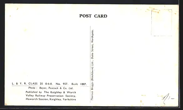 AK L & YR Engine Class 25 0-6-0 No. 957