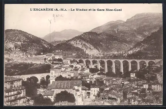 AK L'Escaréne, Le Viaduc et la Gare Nice-Coni