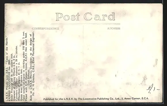 AK LNER Mikado type 2-8-2 Engine no. 2001 Cock o` the North