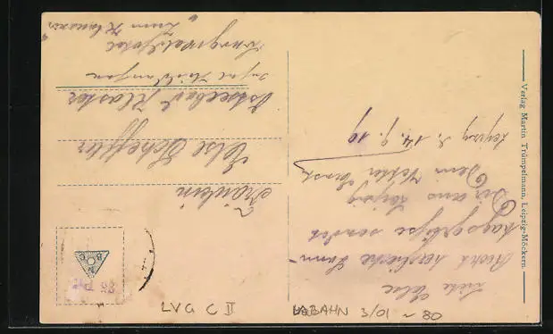 alte Ansichtskarte, gelaufen, Briefmarke entfernt, guter Zustand