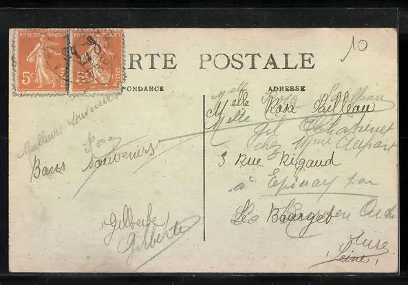 Personenbezogene Daten auf der Rückseite der Karte wurden durch blauen Textmarker unkenntlich gemacht. Die blauen Stellen sind auf die Vorderseite durchgeweicht und wirken sich negativ auf das Postkartenfoto aus