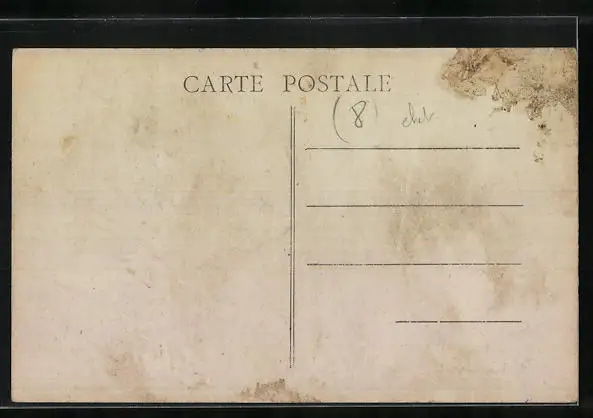 Personenbezogene Daten auf der Rückseite der Karte wurden durch blauen Textmarker unkenntlich gemacht. Die blauen Stellen sind auf die Vorderseite durchgeweicht und wirken sich negativ auf das Postkartenfoto aus
