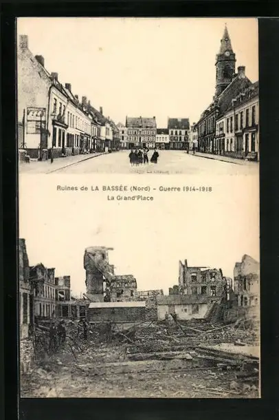 AK La Bassée, Guerre 1914-1918, Ruines, La Grand`Place