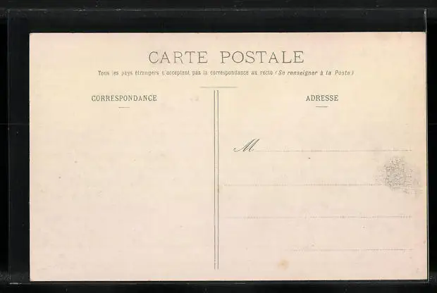 Personenbezogene Daten auf der Rückseite der Karte wurden durch blauen Textmarker unkenntlich gemacht. Die blauen Stellen sind auf die Vorderseite durchgeweicht und wirken sich negativ auf das Postkartenfoto aus