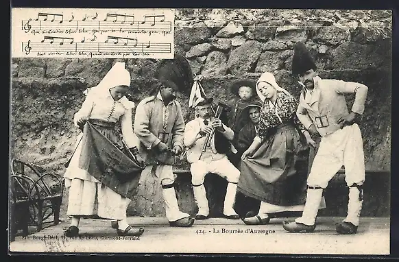 AK La Bourrée d`Auvergne, Paare beim Volkstanz