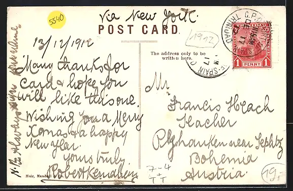alte Ansichtskarte, gelaufen 1912, Eckknick unten li., guter Zustand