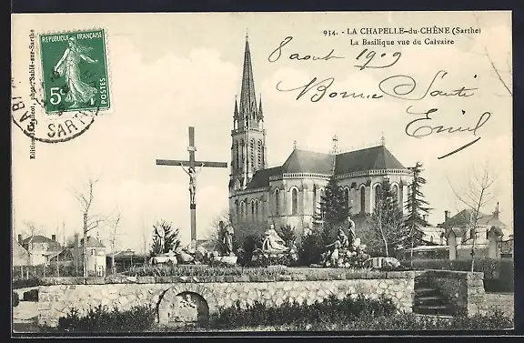 AK La Chapelle-du-Chêne, La Basilique vue du Calvaire