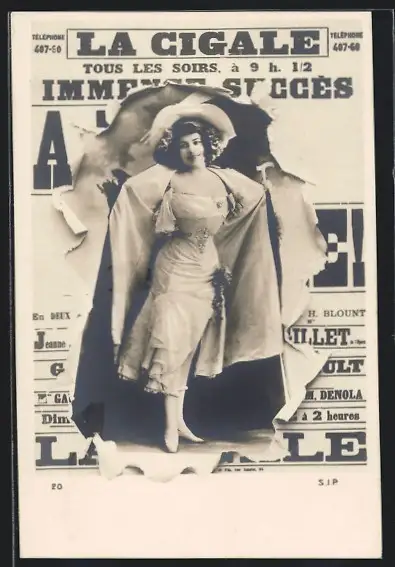 AK La Cigale, Zeitung, Montage mit Tänzerin