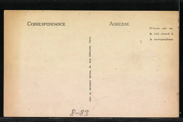 Personenbezogene Daten auf der Rückseite der Karte wurden durch blauen Textmarker unkenntlich gemacht. Die blauen Stellen sind auf die Vorderseite durchgeweicht und wirken sich negativ auf das Postkartenfoto aus