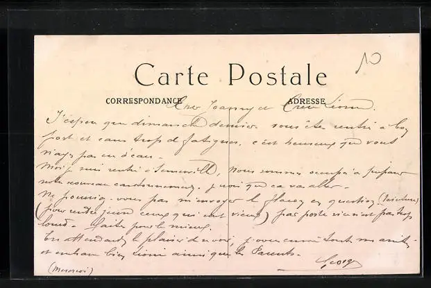 Personenbezogene Daten auf der Rückseite der Karte wurden durch blauen Textmarker unkenntlich gemacht. Die blauen Stellen sind auf die Vorderseite durchgeweicht und wirken sich negativ auf das Postkartenfoto aus
