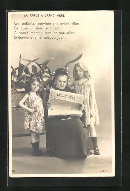AK La Farce a Grand Mere, Grossmutter liest den Kindern aus der Zeitung vor