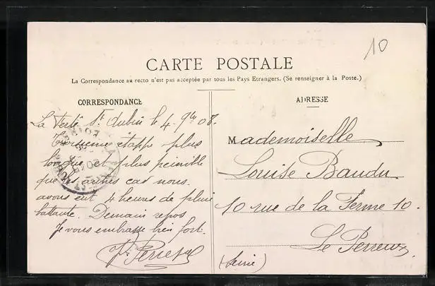 Personenbezogene Daten auf der Rückseite der Karte wurden durch blauen Textmarker unkenntlich gemacht. Die blauen Stellen sind auf die Vorderseite durchgeweicht und wirken sich negativ auf das Postkartenfoto aus