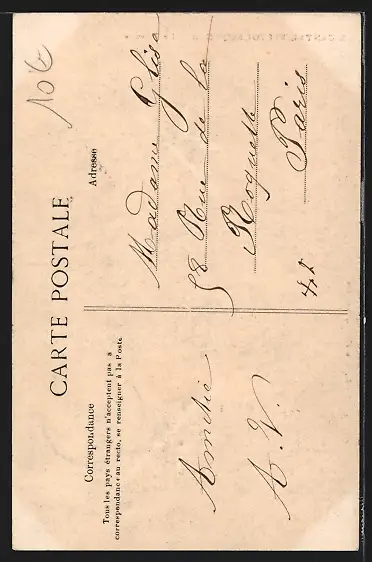 Personenbezogene Daten auf der Rückseite der Karte wurden durch blauen Textmarker unkenntlich gemacht. Die blauen Stellen sind auf die Vorderseite durchgeweicht und wirken sich negativ auf das Postkartenfoto aus