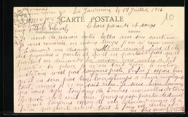 gelaufen 1916, Briefmarke entfernt, guter Zustand
