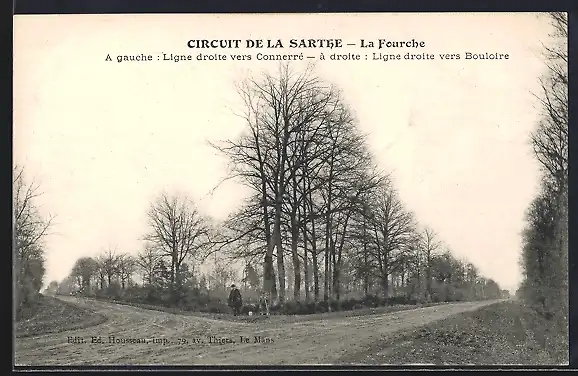AK La Fourche, Circuit de la Sarthe avec routes vers Connerré et Bouloire