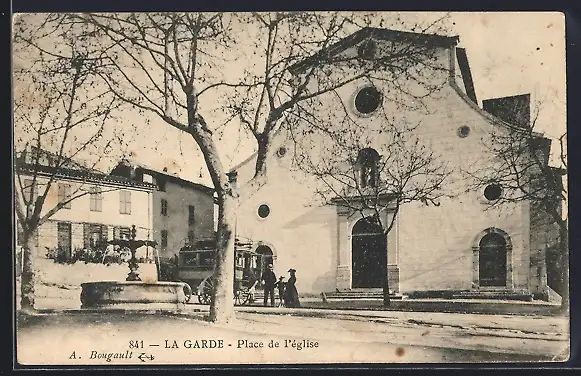 AK La Garde, Place de l`église avec calèche et fontaine