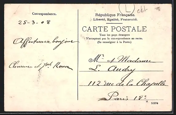 alte Ansichtskarte, gelaufen 1908, Eckknicke li., guter Zustand