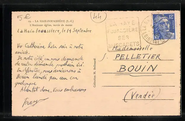 AK La Haye-Fouassière, L`Ancienne Église, sortie de messe