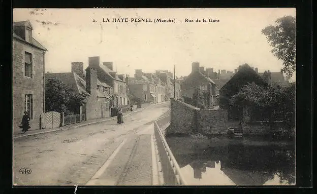 AK La Haye-Pesnel, Rue de la Gare