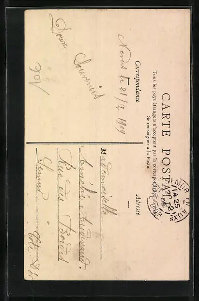 alte Ansichtskarte, gelaufen 1909, Eckknick re. oben